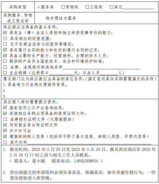 为了满足我司日益增长的采购需求,提高采购工作效率与质量,现面向社会公开征集新增供应商,参与我公司相关项目采购活动,欢迎符合条件的商家申请入库,现将有关事项公告如下: