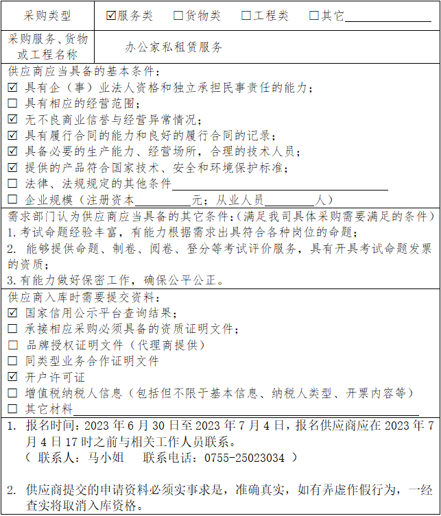 深圳市鹏劳公司管理有限公司关于2023年供应商入库标准报名的公告