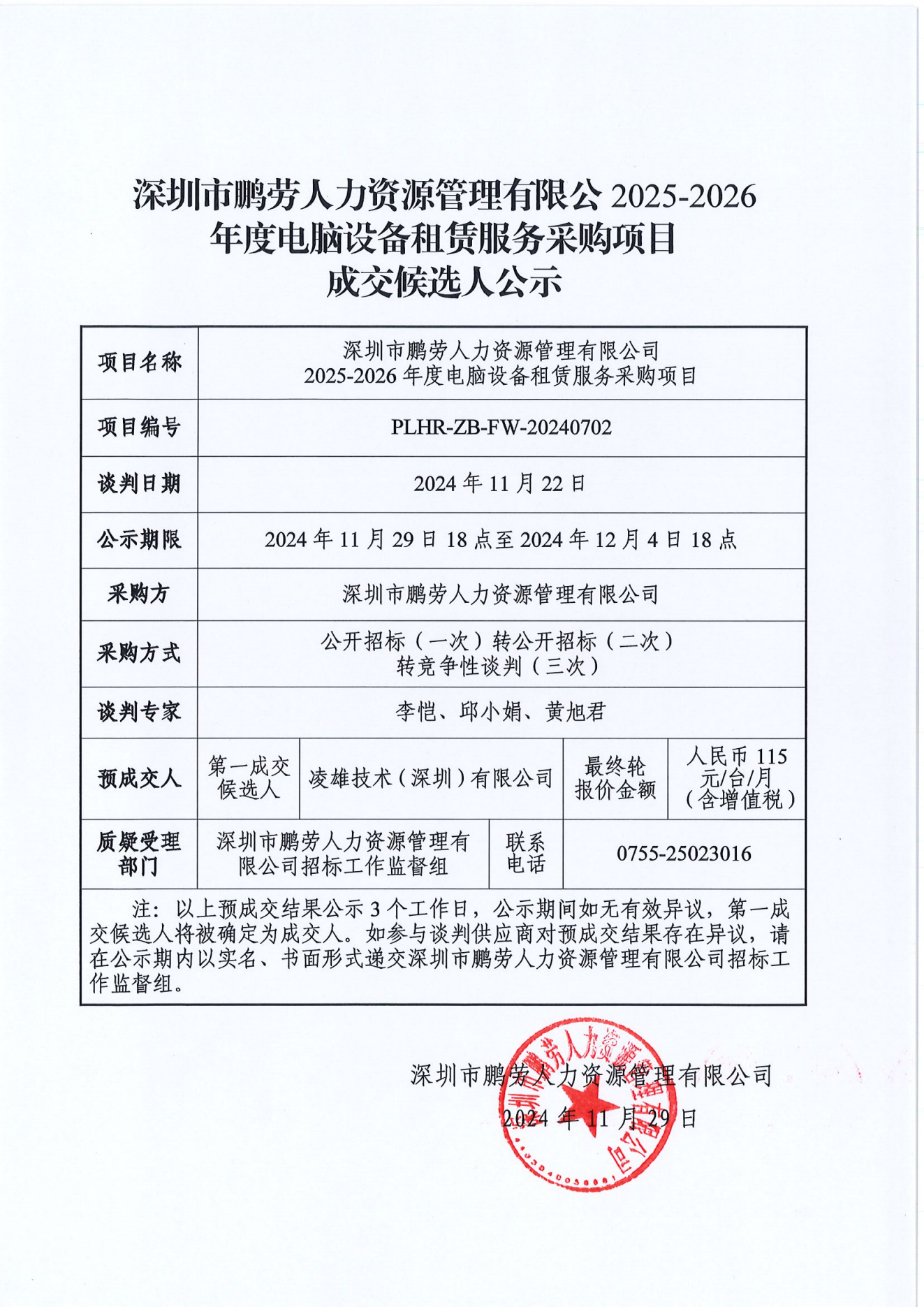 NG28注册平台入口2025-2026年度电脑设备租赁服务采购项目成交候选人公示