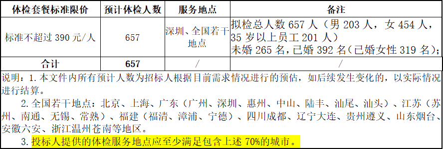 2.投标人应为招标人外派员工提供便利的线上、线下体检预约渠道,同时设置合理体检服务期限,开设企业综合专场,同时为逾期未能参加综合专场体检服务员工提供灵活、机动、合理的体检服务补检;